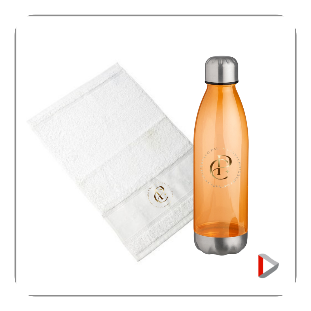 Invista em brindes que fortalecem sua marca com utilidade no dia a dia do seu cliente. O Kit Toalha e Squeeze é a combinação perfeita entre praticidade e personalização de impacto!
